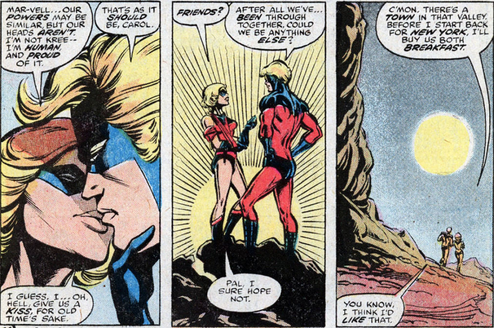 1977年她才成为惊奇女士Ms. Marvel,直到2012年她才继承惊奇队长这个名字。