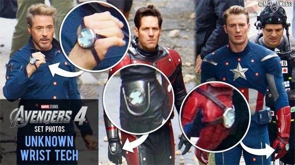 复联4片场照,他们手上出现相同的神秘装置