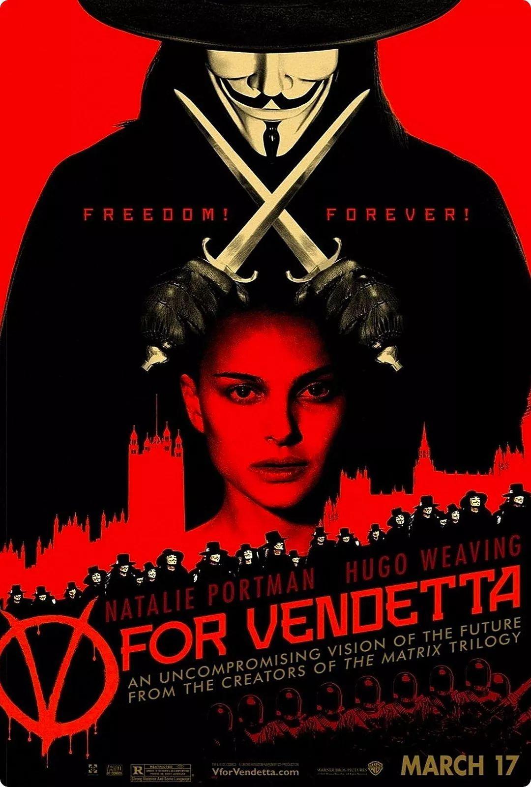 《V字仇杀队》的背景是在一个虚构的平行时空里,我们看到的是独裁下的反抗,或许这只是一场荒诞的政治童话。V是典型的反英雄形象,离经叛道特立独行的英雄式人物,V字面具是象征,是思想,是自由,渴望解除无形的枷锁。电影有很多深层次的东西,取决于你怎么解读,其中有很多经典的台词,寓意深刻。“在这张面具下不仅是肉体,还有思想,而思想是不怕子弹的。”