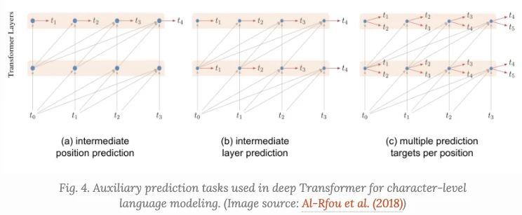 - 每个中间Transformer也用于进行预测。随着训练的进行,较低层的权重对总损失的贡献越来越小。