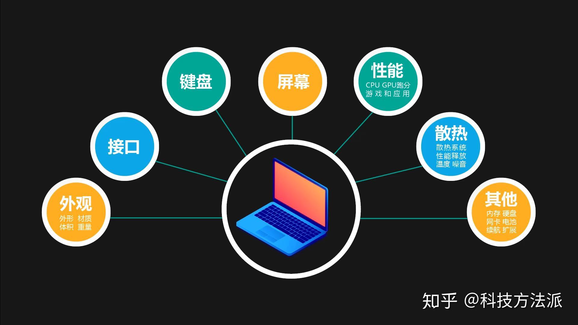 简单说明一下我们测评笔记本的结构,我们会从外观、接口、键盘、屏幕、性能、散热以及其他性能硬件包括续航七个维度对一台笔记本进行详细的解析。