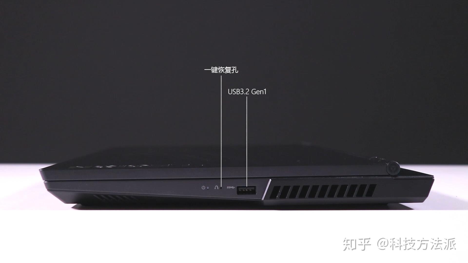 接口方面,Y7000 2020接口主要位于机身后部,依次为RJ45网线接口,支持数据传输和视频输出的Type-C接口,2个USB3.2 GEN1,HDMI2.0,电源接口和安全锁孔。机身左侧为USB3.2 GEN1接口和耳机麦克风二合一接口,右侧USB3.2 GEN1接口和一键恢复孔。