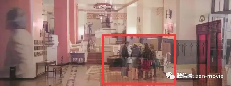 导演也运用了一个 画面过渡 ,一堆行李箱,过渡到一堆人。