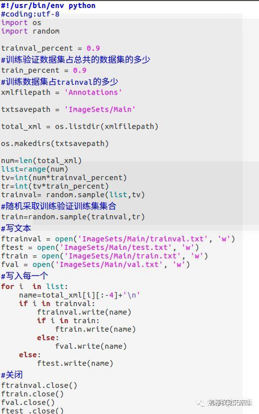 利用以下代码,生成ImageSet文件夹,此文件夹目录下包含Main文件下,在ImageSets\Main里有四个txt文件:test.txt train.txt trainval.txt val.txt;分别是测试数据集索引(也就是各个测试图片的名称,相对路径)、训练数据集、训练验证数据集、验证数据集