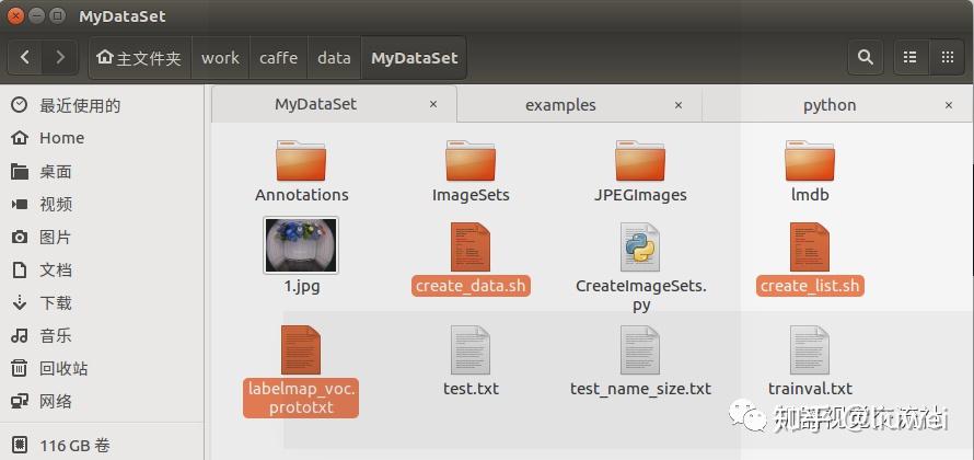 在caffe/examples中有个与MobileNetSSD平级的目录MyDataSet