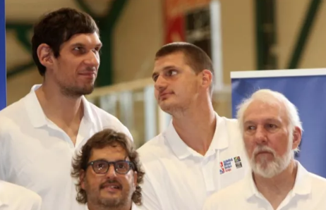 博班是塞尔维亚人,现在掘金队的约基奇也是塞尔维亚人,两人私交甚笃,所以在场上博班非常不给约老师面子,在训练中直接顶翻五花肉约老师后,浑然无视自己犯下的罪行,连拉都懒得伸手去拉可怜的约老师,可谓是“恶劣至极”。