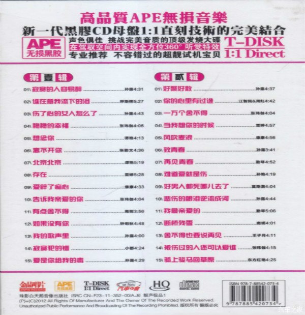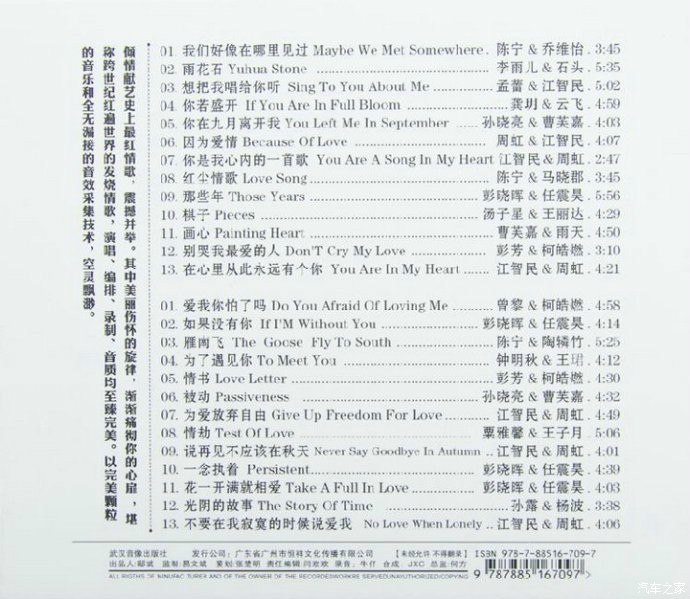 唱片名称:发烧情歌(紫银合金2CD)