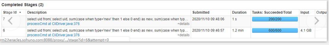 经spark sql查询,一共有71个用户