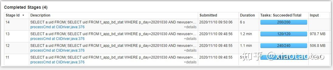 为了提升hive的计算性能,采用union的方式统计用户的各个指标:渠道、主动用户、新增用户、过去30天内的使用天数;