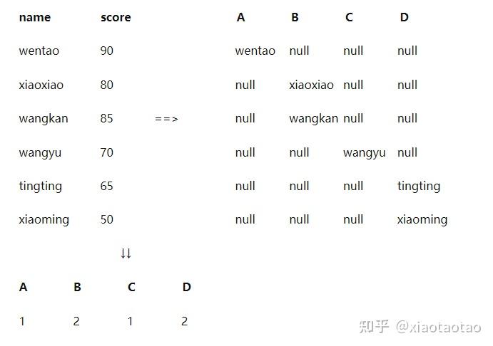 通过观察我们知道,case when语句是将原来在where后的条件移到了case when后面,在逻辑上,都是满足score>=80 AND score<90这个条件的人才会被统计为B等级。