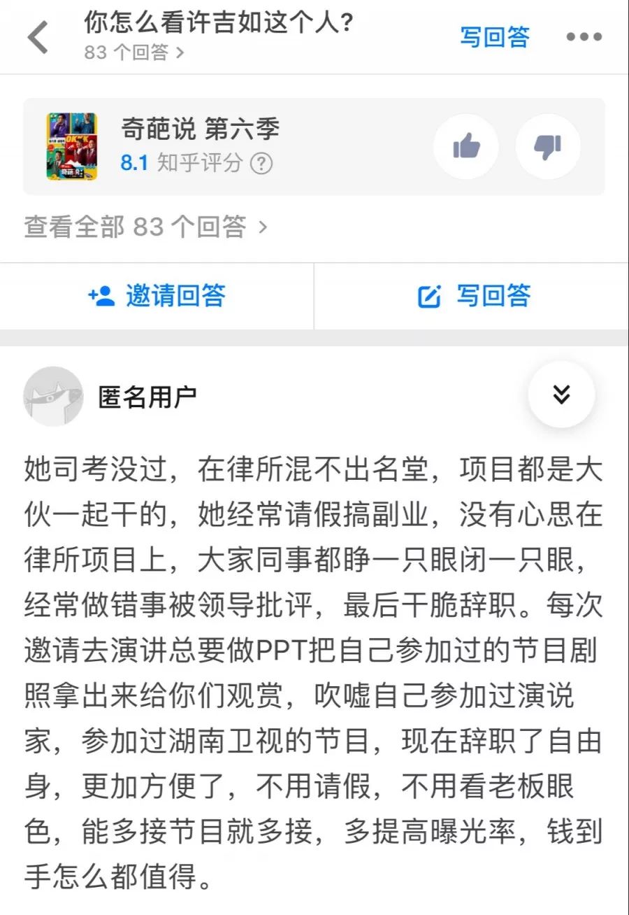 经过一些网友的证实,许吉如没有过司考,按理来说应该只是律师助理的职位,但她在自己的简介上标注自己是律师,并且在自己的主业上也并不尽心。