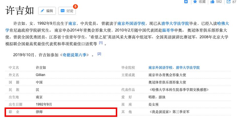 哈佛研究生毕业后,许吉如进入了普衡律师事务所,并且在百度百科上给自己的职业标注了律师。