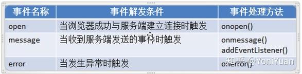 对于服务端发送的带有事件的响应,浏览器需要在JavaScript中使用EventSource对象进行处理。EventSource使用的是标准的时间监听方式(注意,这里的事件并不是响应中所带的事件,而是浏览器上所发生的事件)。当响应的事件发生时,只需要使EventSource对象调用响应的事件处理方法即可。EventSource提供了三个标准事件。