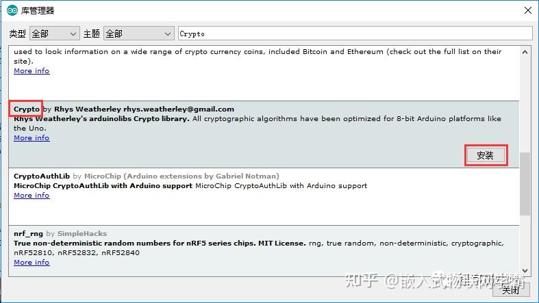 arduino上阿里云所需要用到的四个库文件。PubSubClient,ArduinoJson,AliyunIoTSDK,Crypto(SHA256)。