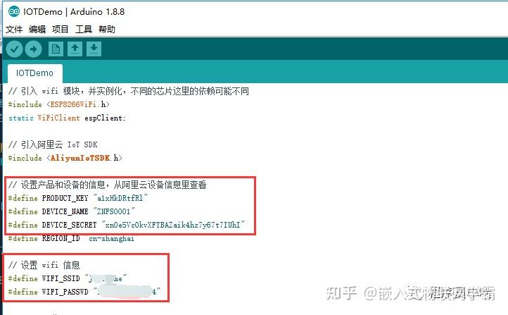 填写三元组和WiFi信息: