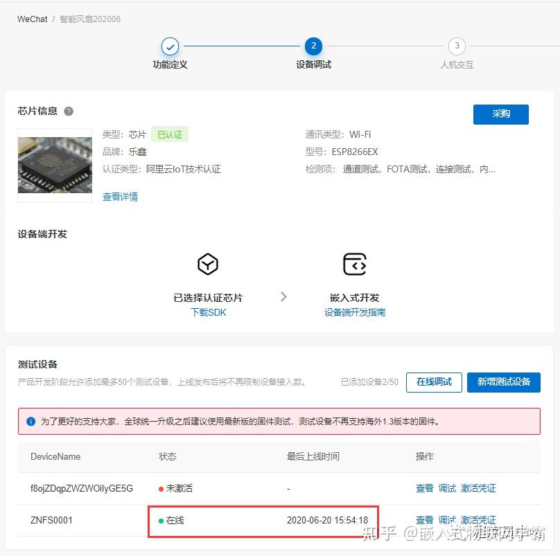 查看飞燕平台,正常应该可以看到设备上线了。