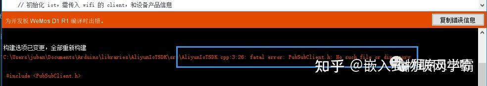 C:\Users\juban\Documents\Arduino\libraries\AliyunIoTSDK\src\AliyunIoTSDK.cpp:3:26: fatal error: PubSubClient.h: No such file or directory