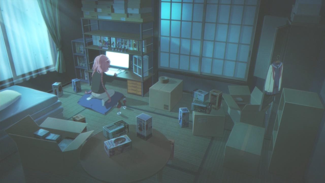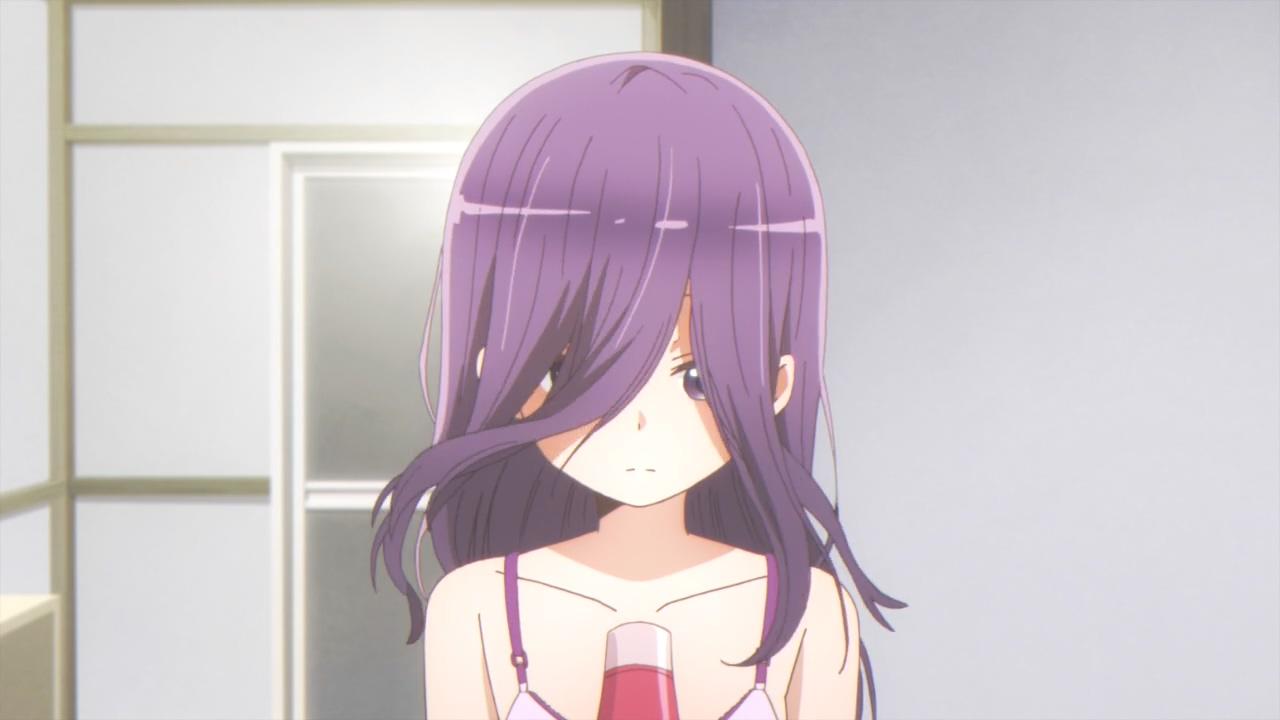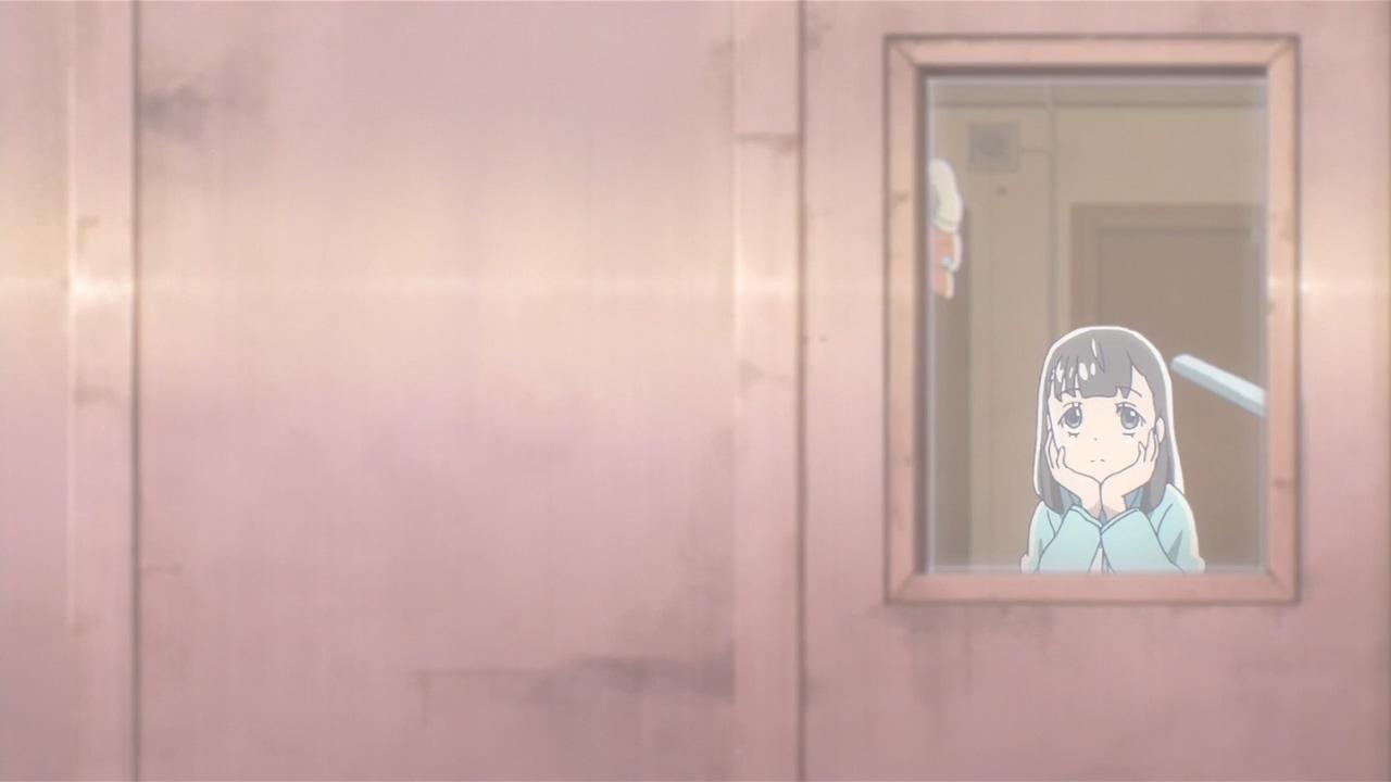一般来讲,这种画格之中的画格,是为了凸显出画格内的内容有着某种局限。例如说,为了制造出隔离感、疏远,或者说,能让我们更集中与格内角色——例如《人渣的本愿》就有场面将画格拆散,造出这种效果的镜头,刻意特写或强调角色的表情与肢体语言。早前播放的《比宇宙更远的地方》也比较自然地使用窗户、景物,去强调角色的孤寂感、孤单感——五话有着大量这类的例子。 《漫画女孩》耐人寻味的地方却不仅仅是格内的内容,还包括将背景抽空,以致到背景要不就是纯白色,要不就是不上色,只有线稿。
