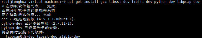apt-get install gcc libssl-dev libffi-dev python-dev libpcap-dev