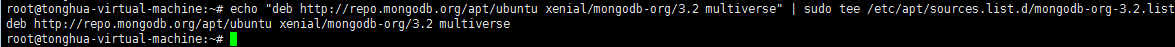 echo "deb http://repo.mongodb.org/apt/ubuntu xenial/mongodb-org/3.2 multiverse" | sudo tee /etc/apt/sources.list.d/mongodb-org-3.2.list
