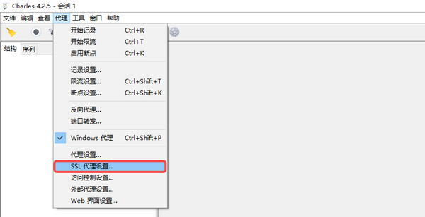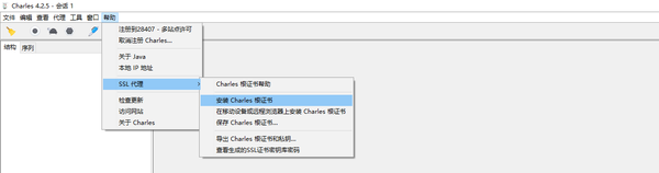 菜单栏点击“帮助”》SSL代理》安装charles根证书: