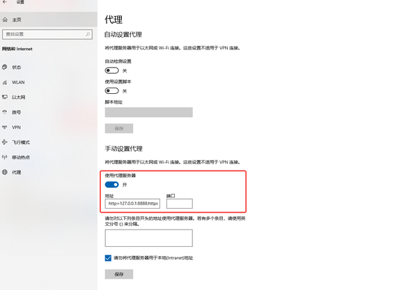 安装完成后,记得去电脑的网络和Internet中设置本地使用代理为Charles开启的代理服务器:
