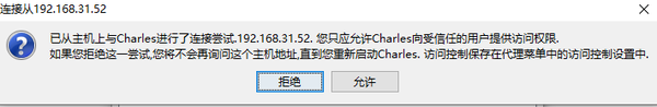 Charles会自动弹窗提示有设备接入,询问是否允许,选择允许: