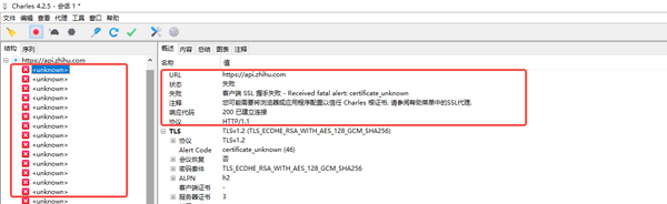 :即使各项配置、证书都完全安装配置好之后,很多使用安卓手机的同学去打开一个APP测试抓包效果时,会发现依然只能抓取http请求,https的请求还是抓取失败: