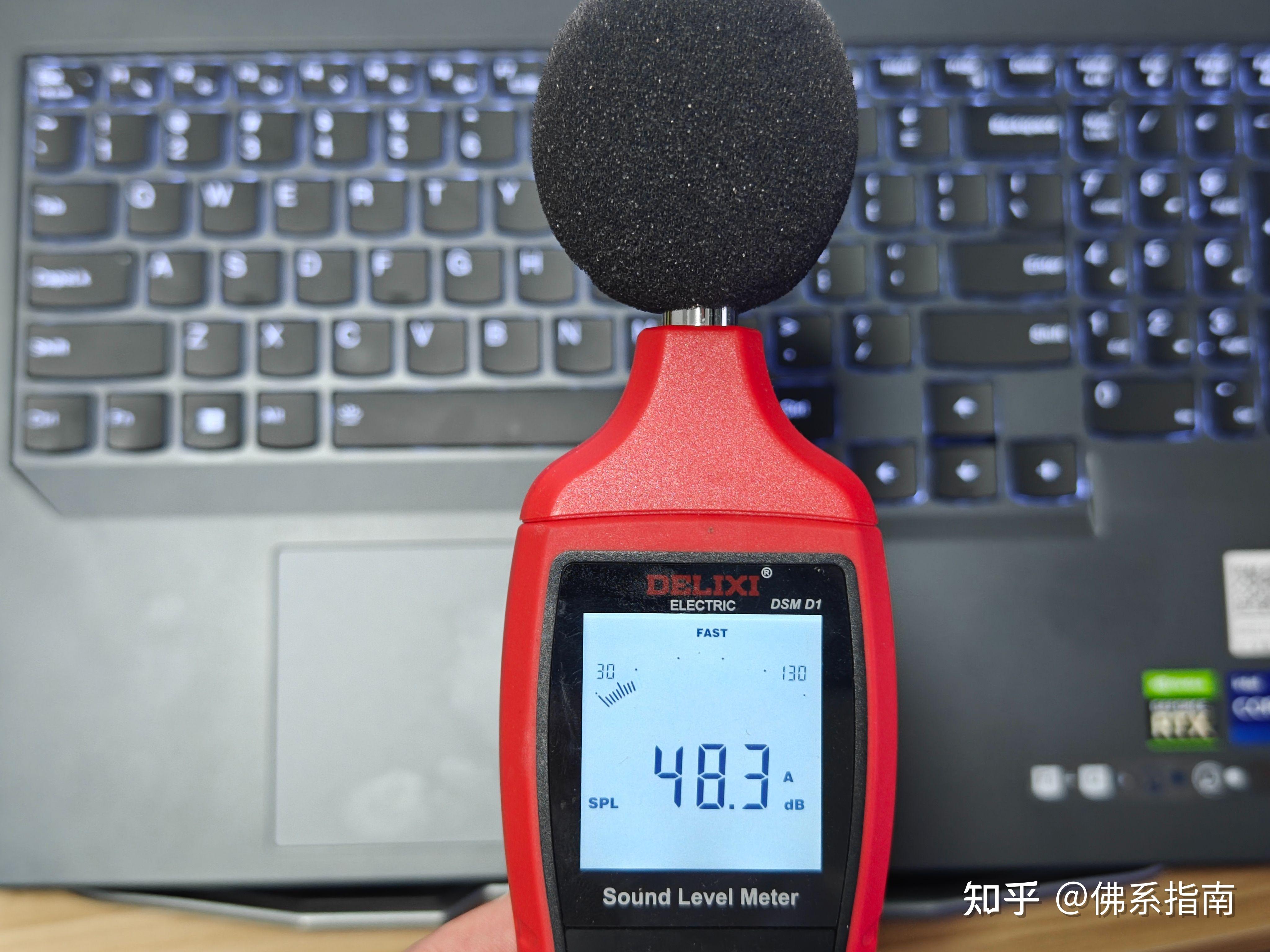 野兽模式下声音稍微好了一点,为48.3dB,还能接受。这基本上是玩高负载游戏的噪音表现了。