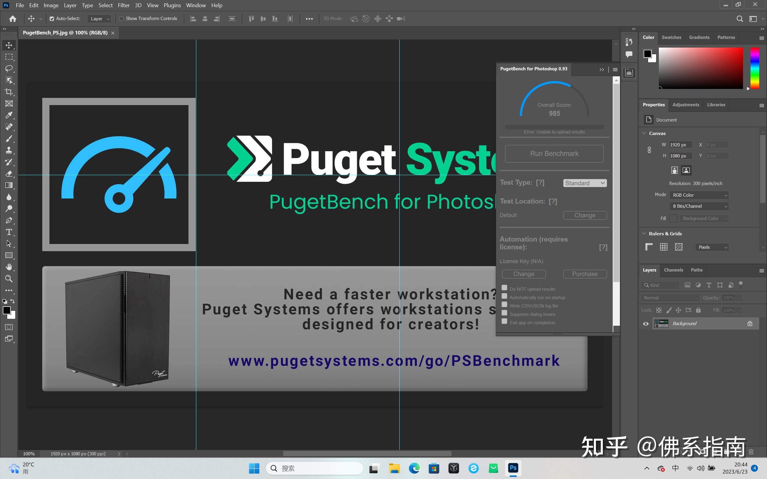 采用PugetBench进行PS性能跑分测试,运行在进阶模式下进行常用操作、滤镜、图像拼接三种测试项目下运行三次,最终形成打分。测试之后得分为985分,属于比较不错的得分,即便是高负载修图,拯救者Y9000P也是可以胜任的。
