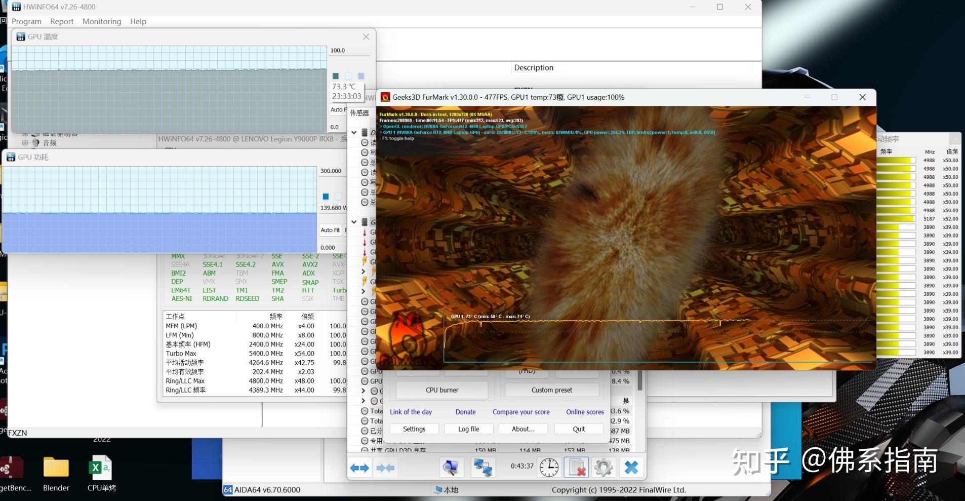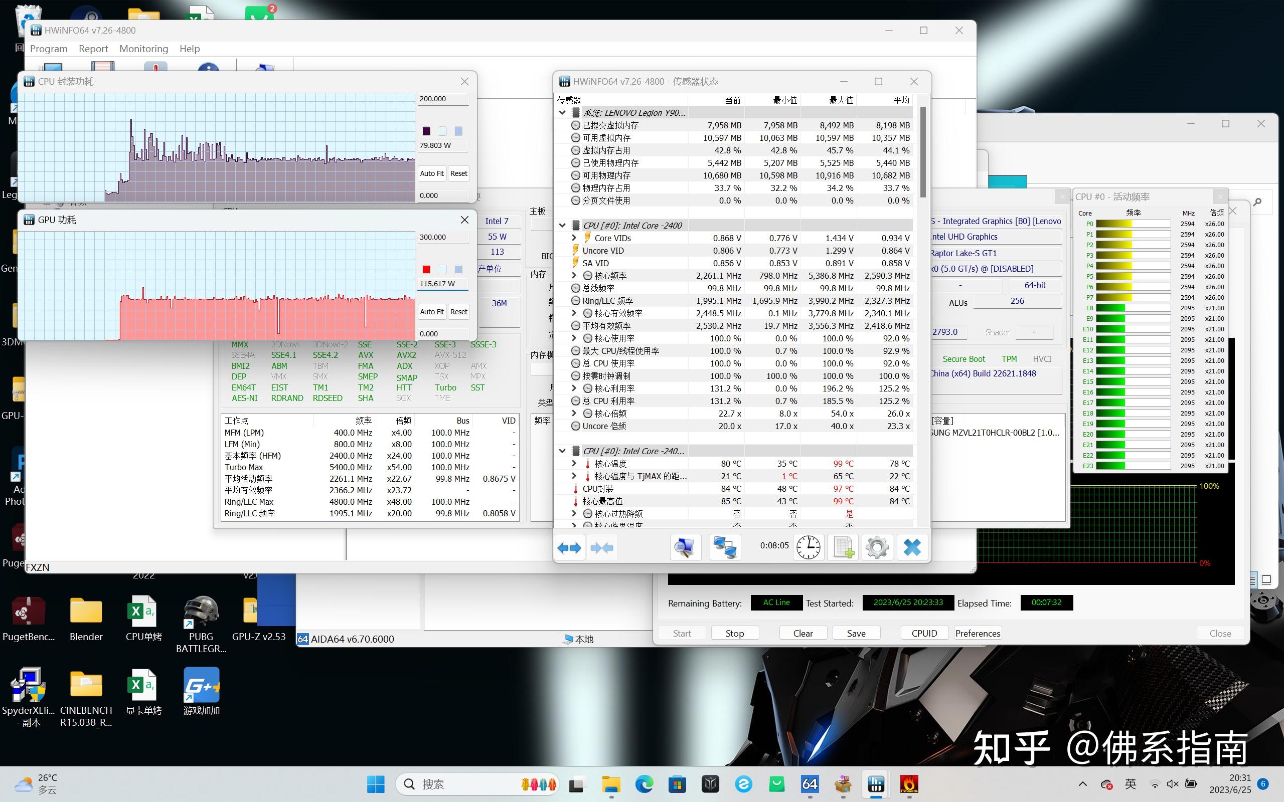 双烤方面,Y9000P的还是需要调教的,显卡比较稳定,在115W左右,CPU稍有欺负,基本在在75W左右浮动,最高约85W,最低约72W,但整体保持在80W+115W的双烤表现,整机性能释放约195W。但双烤并不算稳定,需要拯救者进行后续的调教。