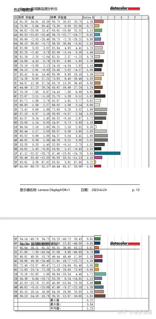 出厂情况下的色准表现也很好,Delta E最大值为3.84,最小值为0.22,平均值为1.23,色准素质确很高。