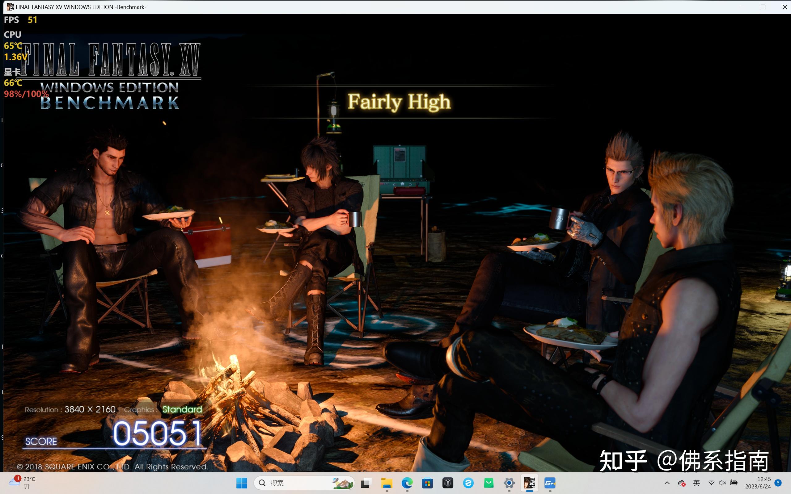 在最终幻想15游戏测试中,分辨率设置为3840*2160,画质为Standard,最终测评表现为5051,换算过来平均帧率为51帧。