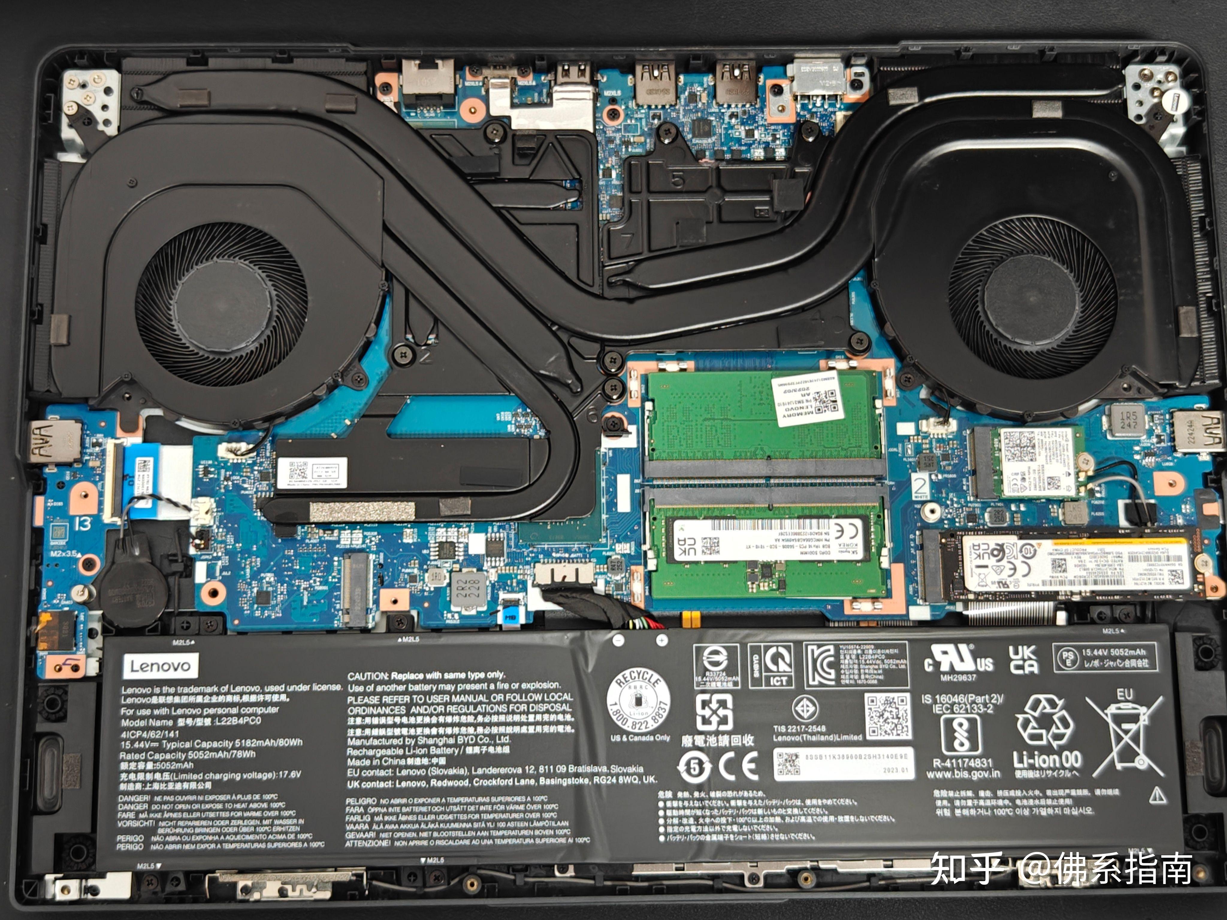 拯救者Y9000P的散热规格在这个价位段属于主流水准吧,双风扇+5热管,整机性能释放195W。拆机之后看一下,整机的散热规格还是在线的。