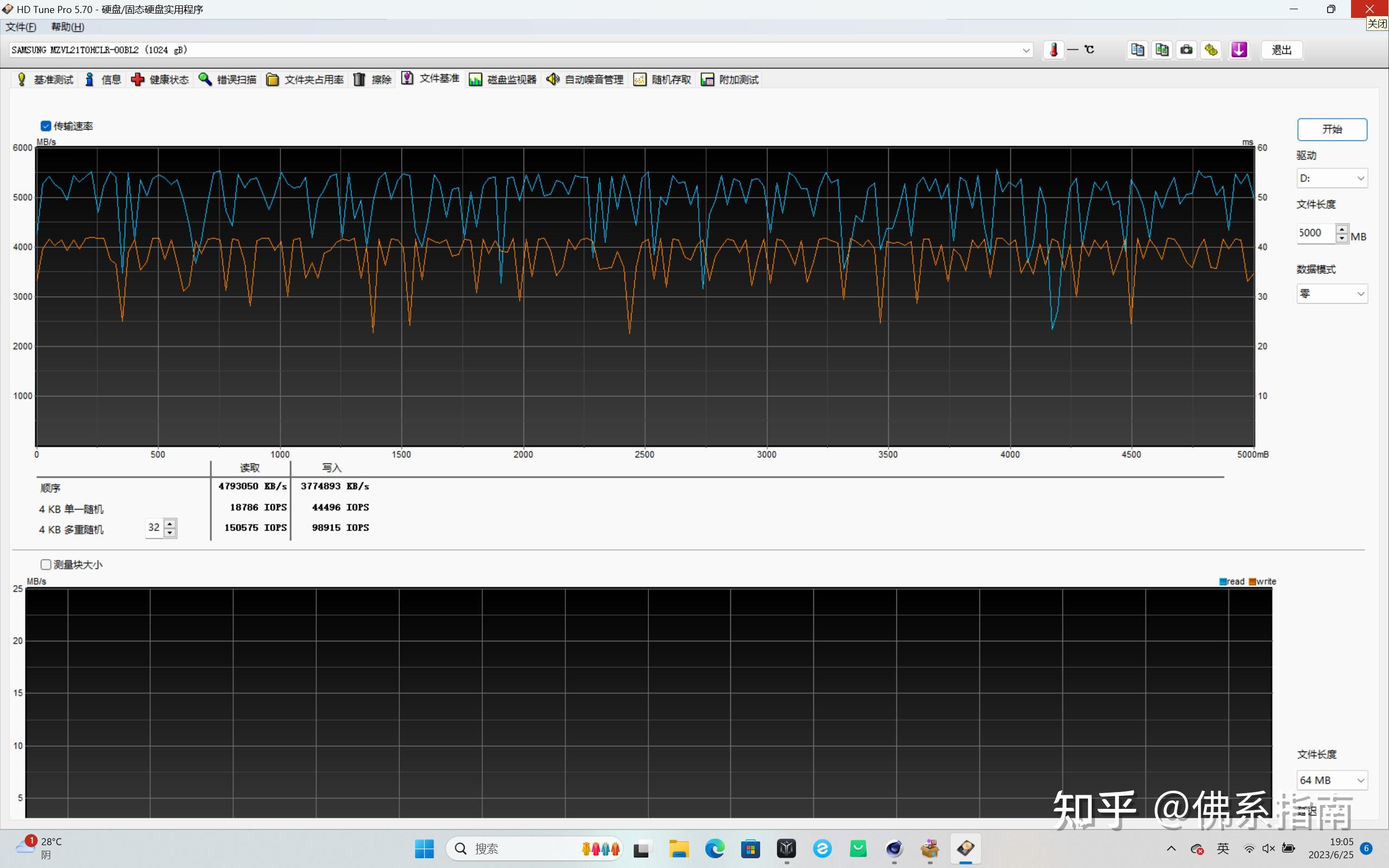整体速率还是不错的,用HD Tune Pro测试传输5000MB大小的文件,平均顺序读取输入为4793MB/s,平均顺序写入速度为3774MB/s。