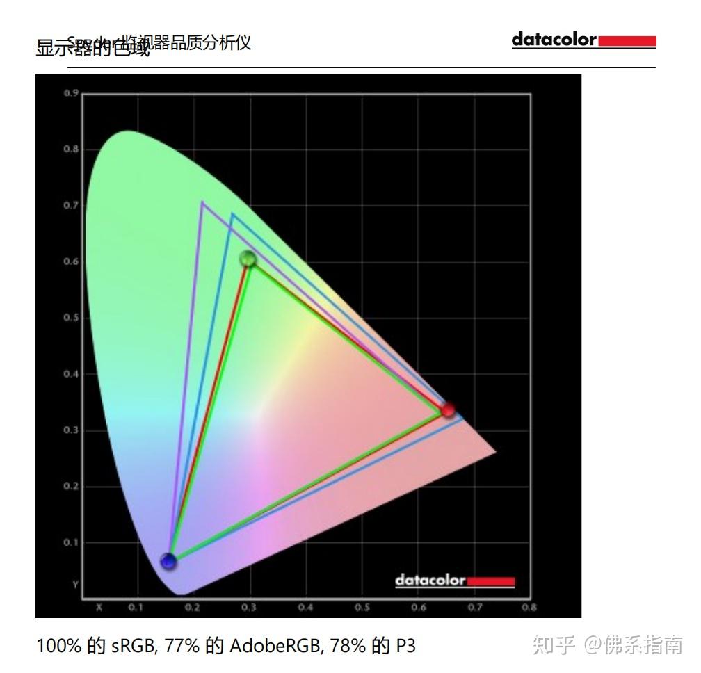 实测未校色的情况下,拥有100%sRGB、77%的AdobeRGB以及78% P3色域。