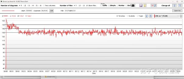 峰值功耗达到了164W,均值在130W左右,整体表现还是比较不错的。