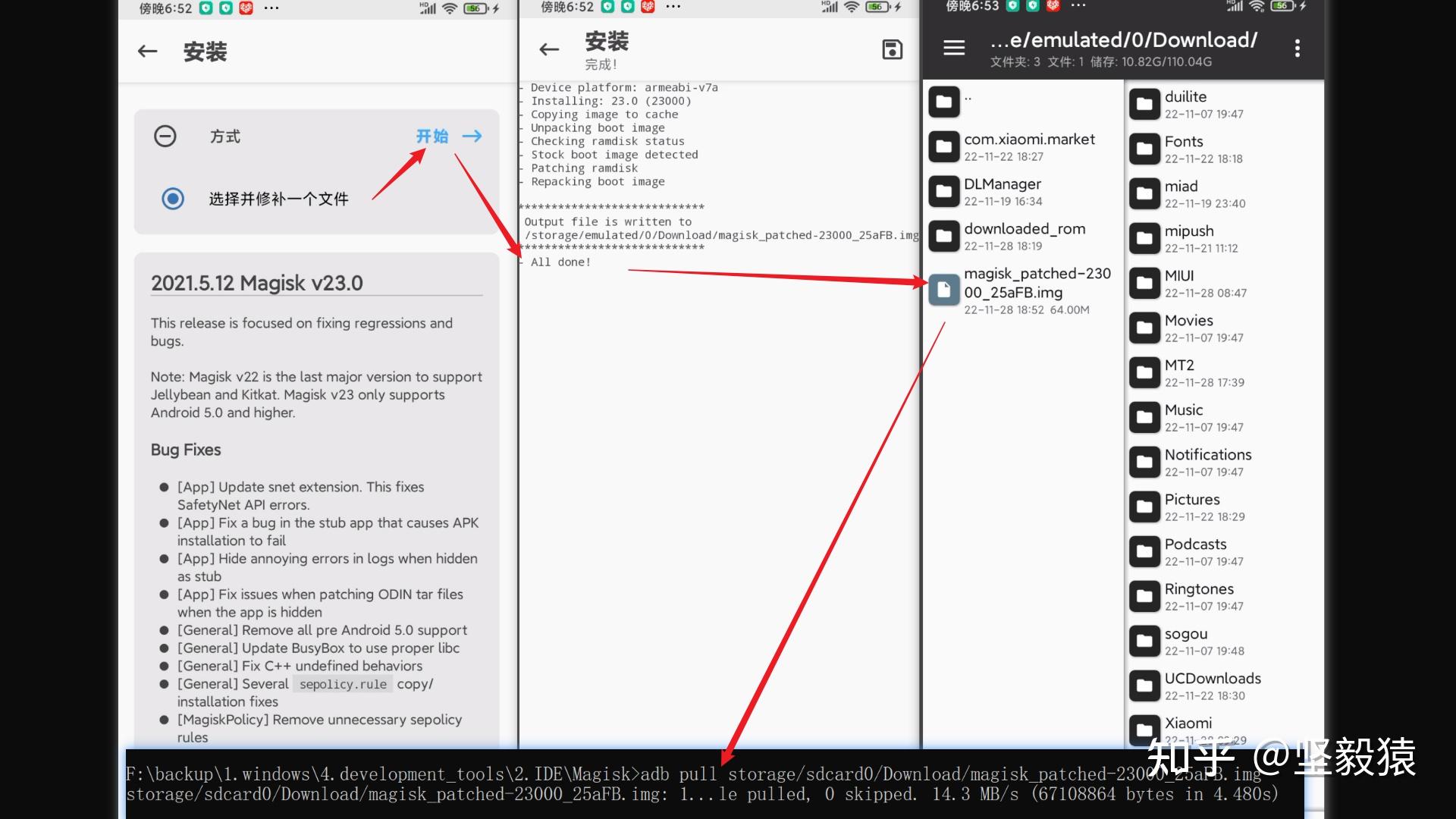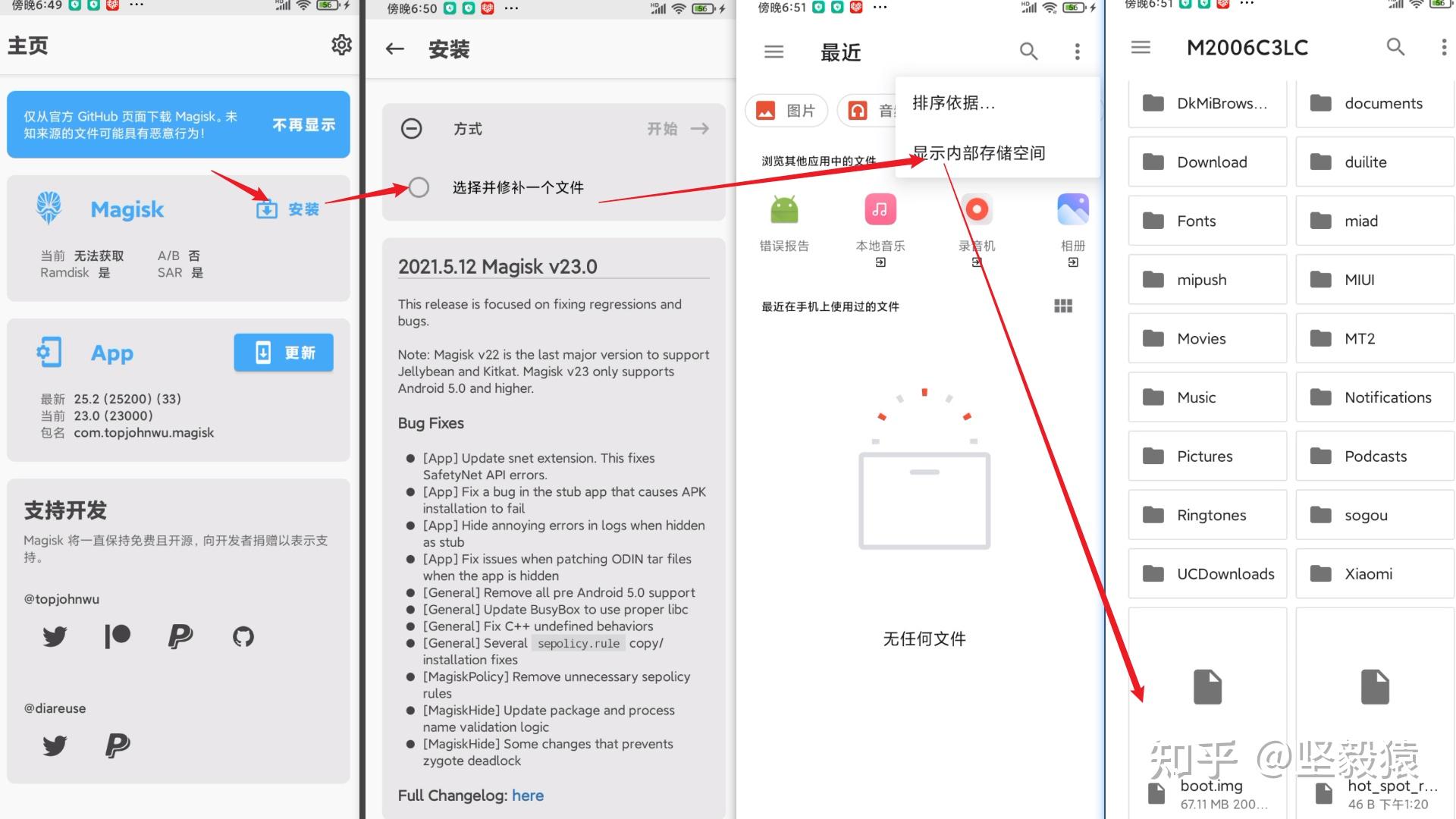 - 安装Magisk Manager 后,点击安装,选择并修补,选择boot.img文件