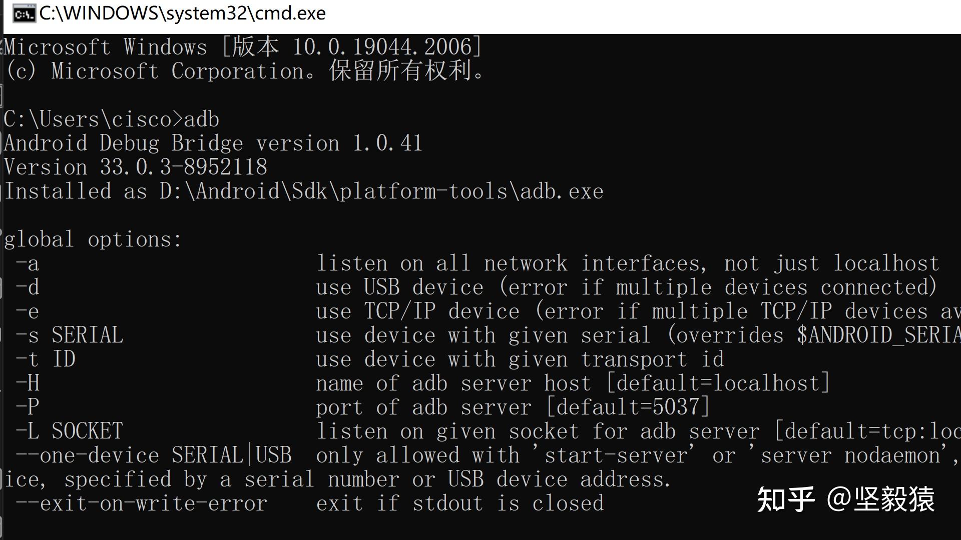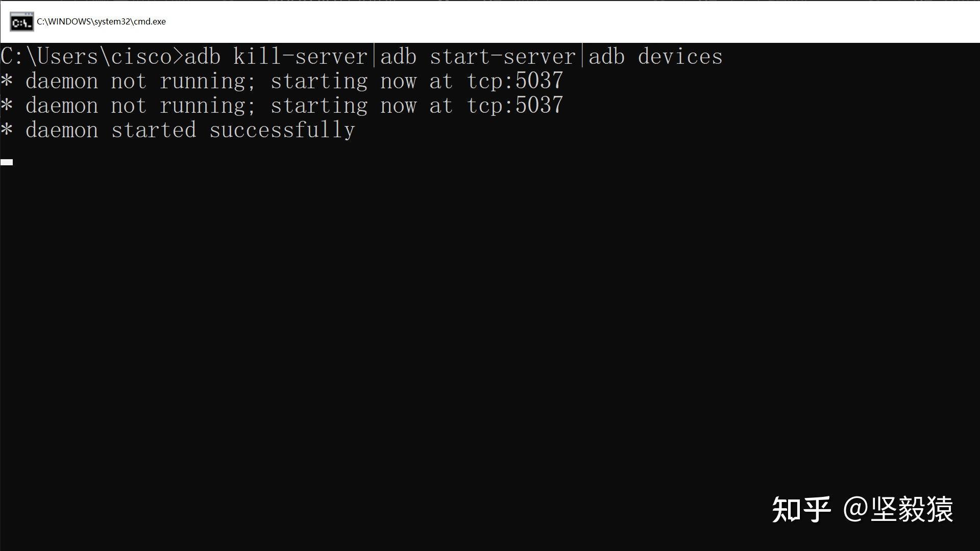 restarting in TCP mode port: 5555 # 在命令行中看到 TCP mode port: 5555 就表示监听成功: