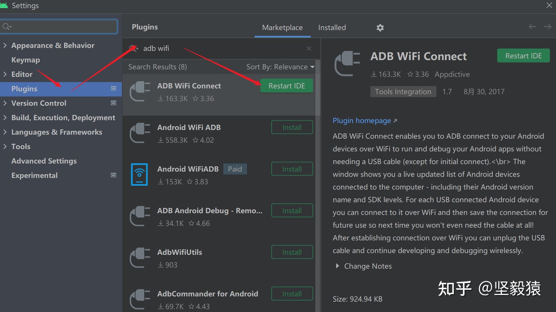 b. 方式2:通过 as的ADB WiFi Connect插件打开 - adb 无线连接每次都得经历那些步骤,有点繁琐,安装这个插件直接在 Android Studio 中直接鼠标点点的快速方式来完成 -