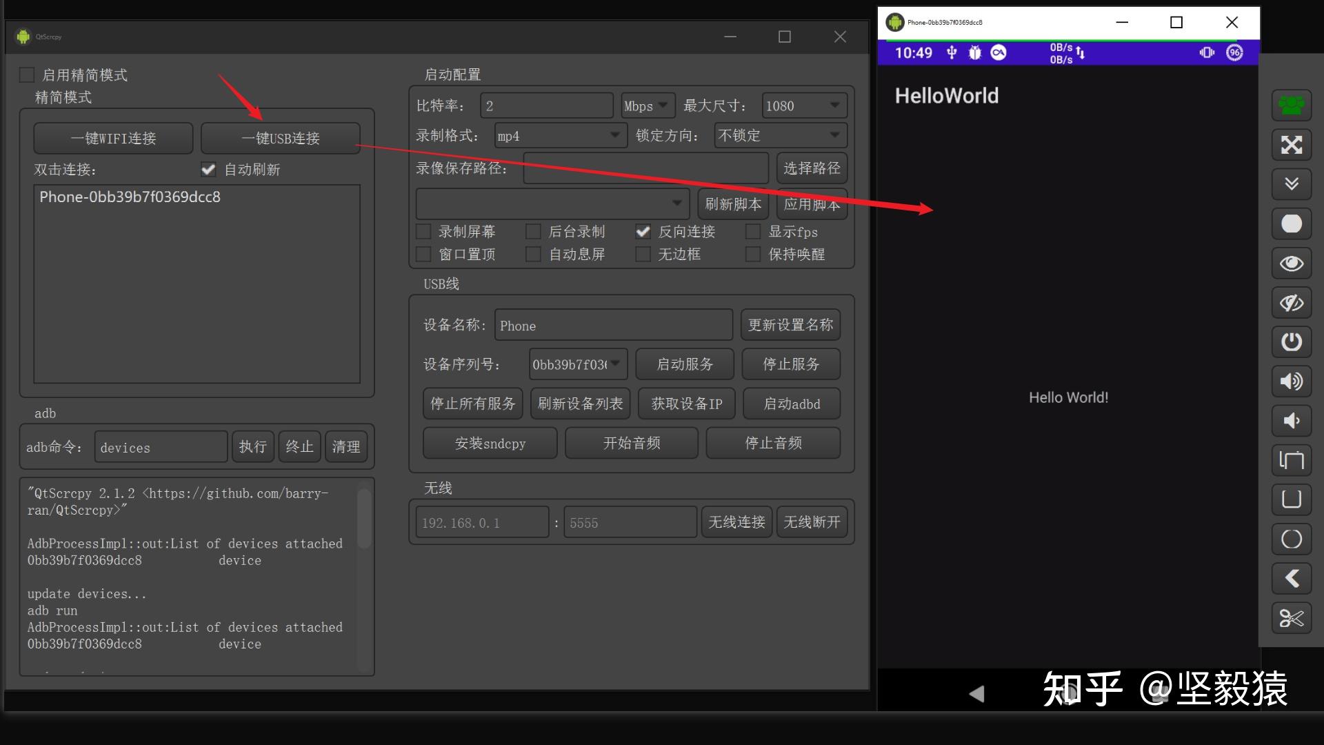 # 通过 connect 命令和 IP 地址以及端口号连接到目标手机