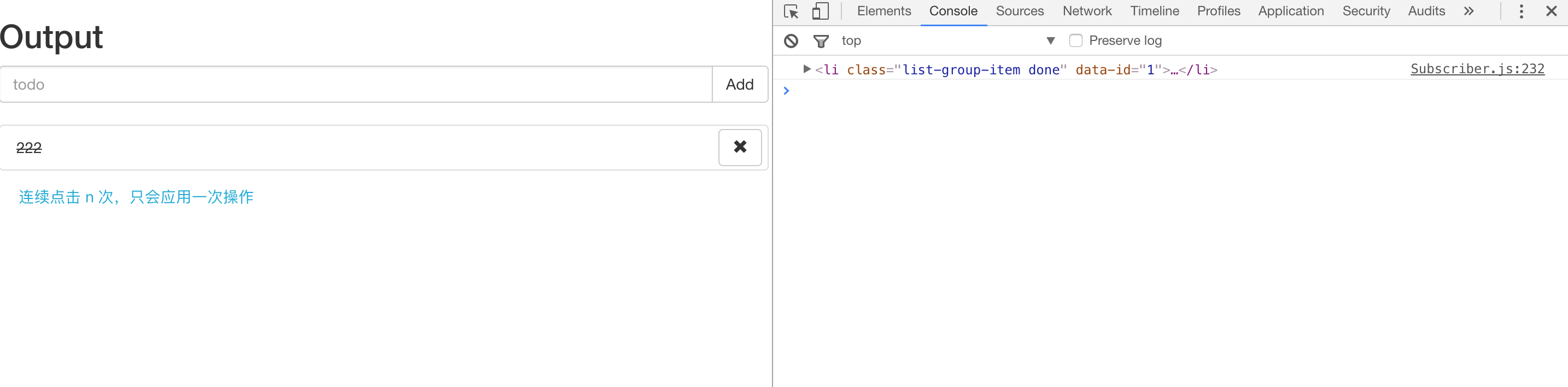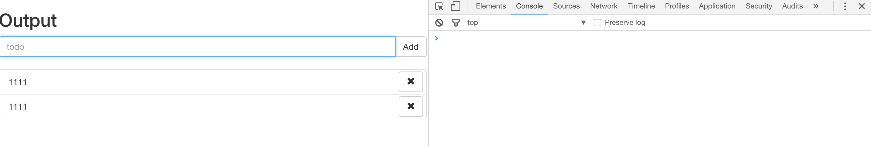 此时还存在一个小问题,在生成 todo item 后再输入与上次同样的值并按下回车,这次的值会被 distinct 操作符过滤掉。为了解决这个问题,我们可以指定 distinct 操作符的第二个参数 flushes 来清除 distinct 操作符的缓存: