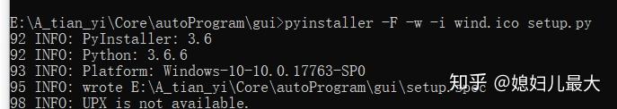 执行命令:pyinstaller -F -w-i wind.ico setup.py,如下图所示。