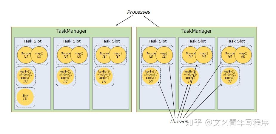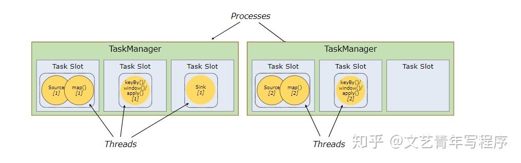 Flink 允许不同算子的 SubTask 共享 Slot,只要它们来自于同一个执行计划。这样的结果就是,一个 Slot 中可能含有一整条 Pipeline。