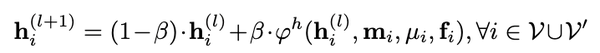 其中 h i ( l )为节点i在第l层的SE(3)不变表征, x i ( l )为节点i在第l层的空间位置。从公式中可以看出,分子图中的节点在每一层中会不断变化。模型在最后一层能够输出其预测的配体结合构象。为了保证配体原子位置的变化符合3D化学规则,EquiBind在每一层会对变换后的坐标进行优化,即公式中的 Ψ 函数。其具体形式如下: