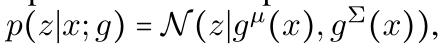 g输出一个K维度的平均值μ和一个KxK维度的协方差矩阵∑。然后通过改变变量公式,我们会有