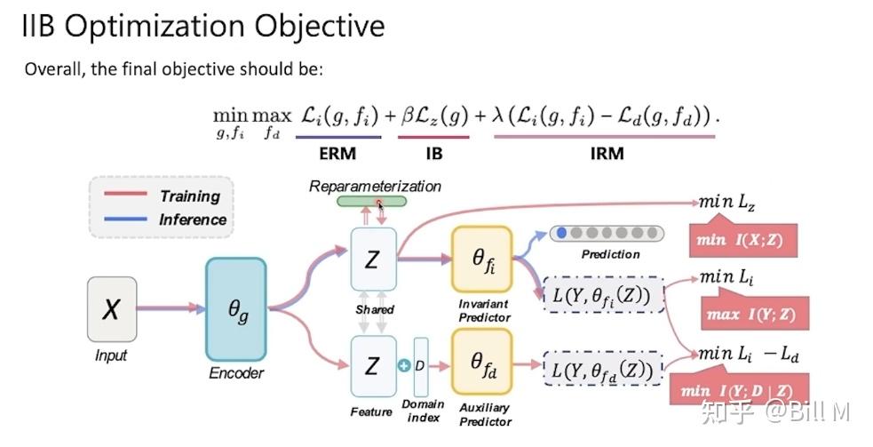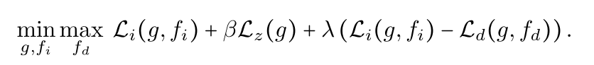 其中fi以特征z为输入,f (d),d = 1,⋯,d以特征z和定义域指标d为输入。总的来说,我们可以通过优化IIB目标函数的可处理下界来最大化我们的IIB目标函数:
