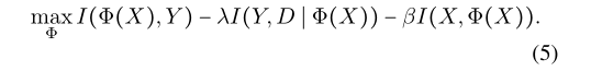 因此,为了选择容量最小的一个,我们惩罚较大的I(X,Z),将其添加到原始的IRM公式中。为此,我们将目标定为: