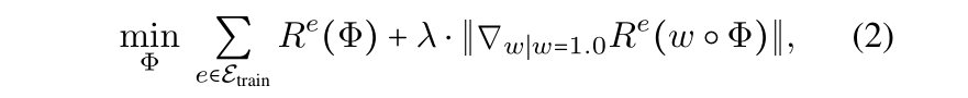 注意,上述目标是一个双层优化,难以优化。因此,(Arjovsky et al. 2019)采用一阶近似,损失函数由