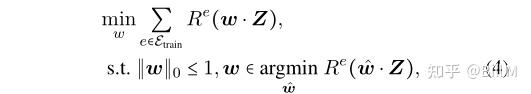 ||w|| <=1是稀疏约束,上面的公式是IRM的不变风险约束,由于稀疏性约束,只有4种选择。选择zsp不能满足不变约束,而选择zp或zsk不能最小化经验风险(Q)。因此,唯一的最优解是w = [w *1, 0, 0, 0)。没有稀疏约束,优化问题变成IRM和zi, zp, zsk将被用于分类(Q)。在没有不变约束的情况下,可以选择zsp,因为包含虚假特征可以降低经验风险。